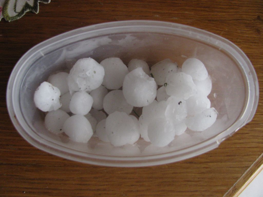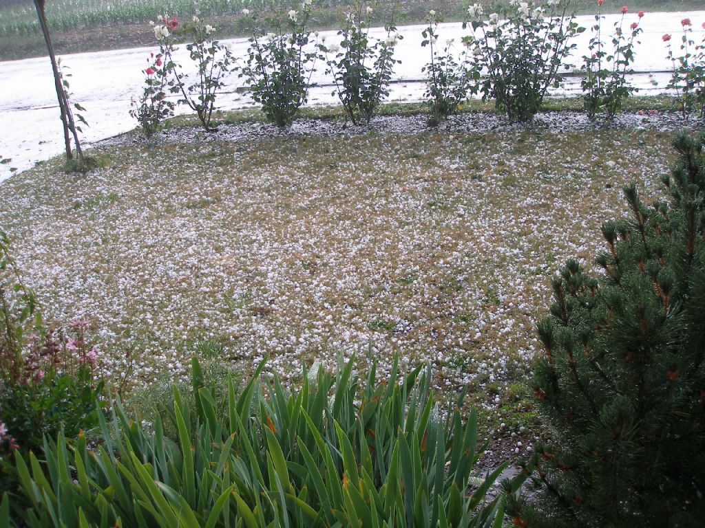 Kroupy pro zdokumentování zachovala paní Lenka Hanzalová, za což jí patří velký dík, stejně jako paní Marii Bazalové za poskytnutí fotografií poničené zahrady.