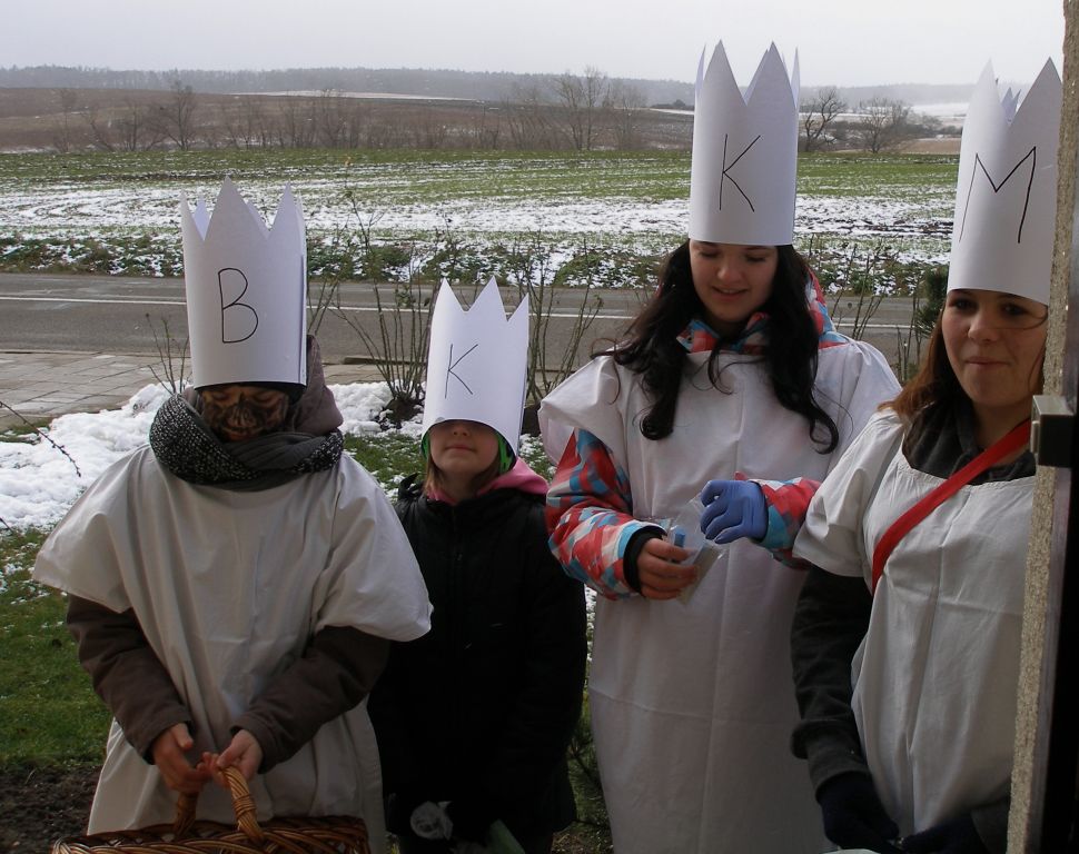 Skupinu koledníků, stejně jako vloni, zodpovědně vedla Kateřina Držmíšková, spolu s ní koledovali Dominika Hanzalová, Kamil Švabík a Eliška Držmíšková.
