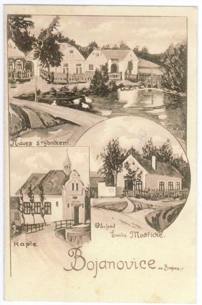 Pohlednice z roku 1938 byla vydána nákladem A.Zdražila, Bojanovice a vlastníme originál.